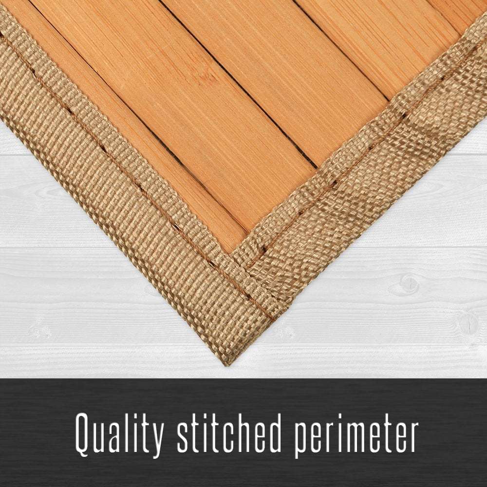 Se trata de una pieza elaborada con base vegetal de Bambú, en la cual puedes escoger entre diferentes anchos en las tablillas. La alfombra de bambú Uganda viene en diferentes tonos de madera natural, para que se pueda adaptar a la perfección al resto del ambiente. Enseguida te darás cuenta de que se trata de un material muy fácil de limpiar con un paño, agua o jabón. Además, cuenta con una base rugosa y antideslizante para un uso muy satisfactorio.