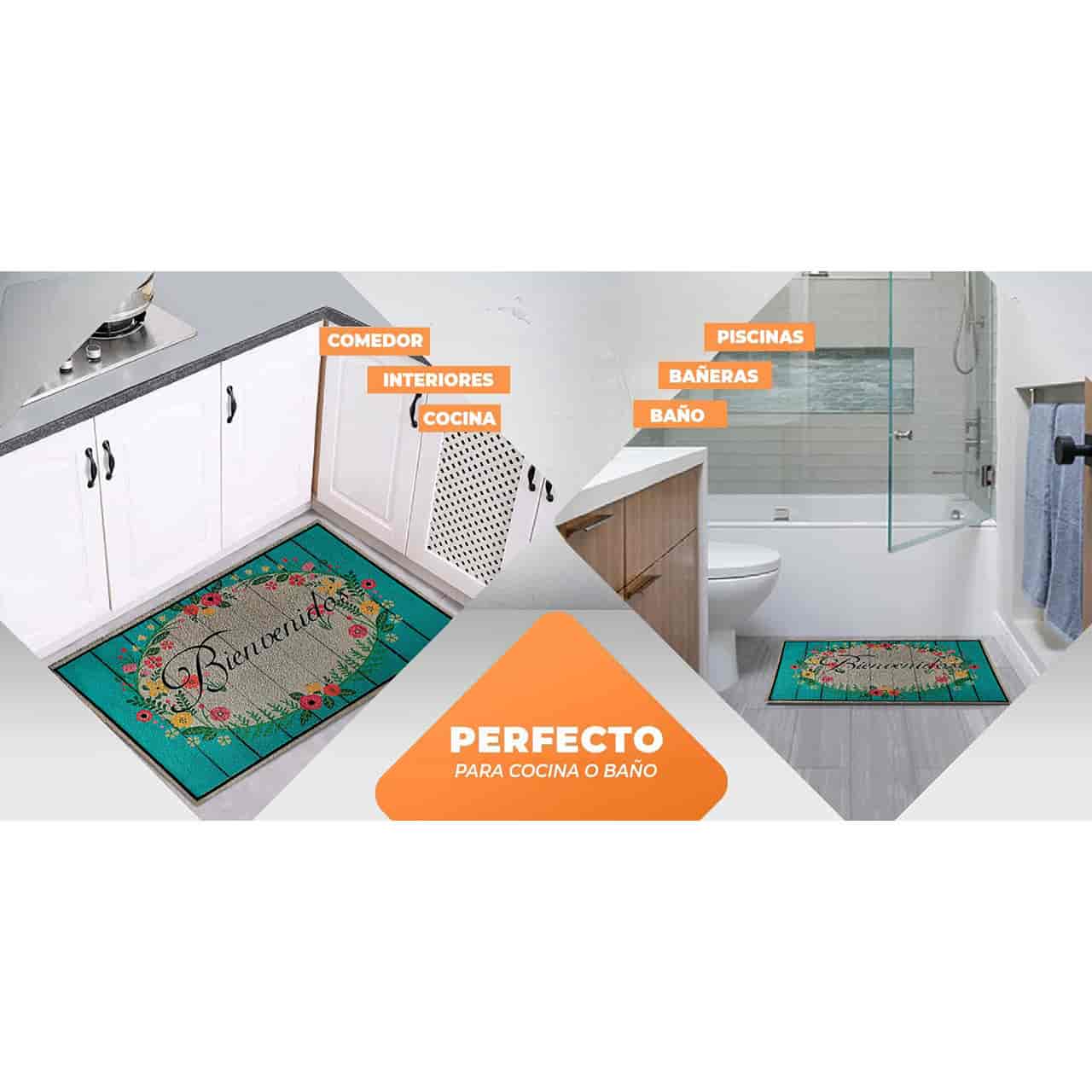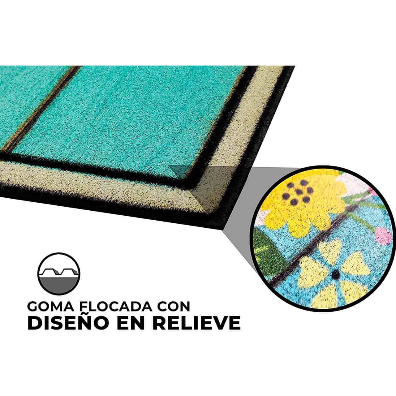 • Evita resbalones con su base antideslizante. Límpiate los pies de manera segura en este felpudo con base antideslizante. Evita cualquier tipo de desavenencia ocasionada por suelos húmedos o con polvo.