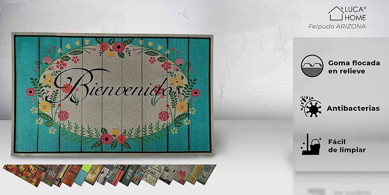Colores, dibujos, e imágenes dignas de presidir la puerta de tu casa. Desde el imperioso elefante tailandés, a una zona natural con plantas y mariposas. Incluso, diferentes formas de dar la bienvenida o de saludar a tu invitado a través de diversos patrones. El felpudo goma flocada antideslizante Arizona de LucaHome te permitirá darle un toque más que especial a tu entrada. Un diseño premium en caucho que podrás utilizar tanto en interiores como en exteriores.