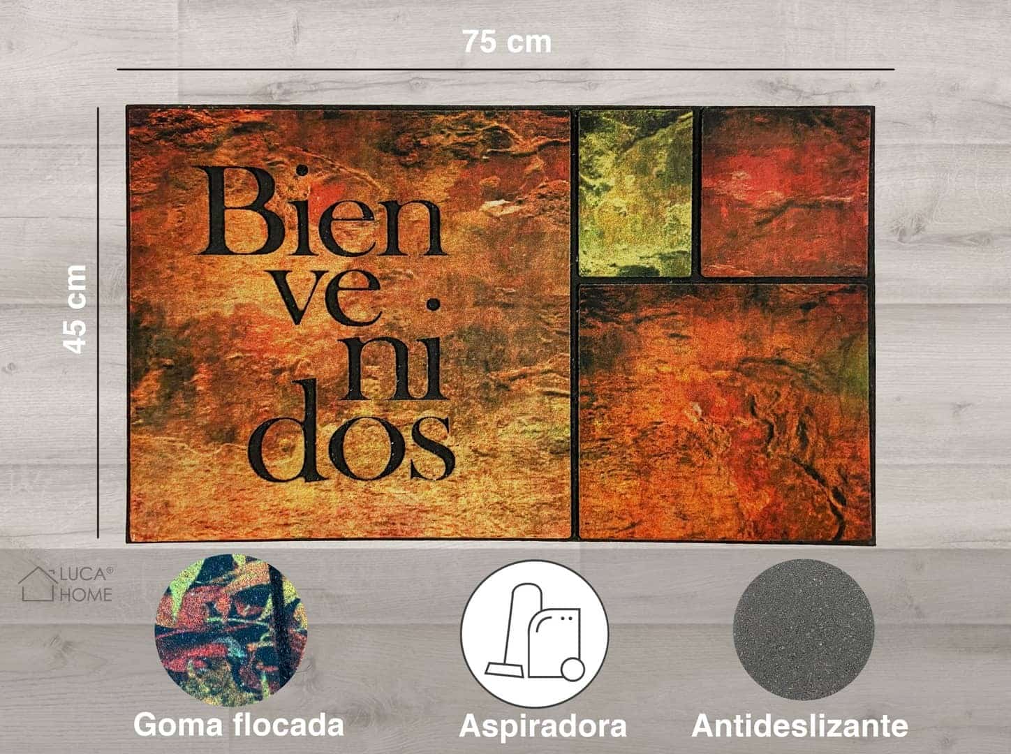 - Material de tejido premium. El felpudo de goma flocada de LucaHome, está fabricado con un tejido premium de calidad, cuyas propiedades brindan una larga durabilidad y resistencia en el tiempo. Aprovéchate de este producto a un precio económico.