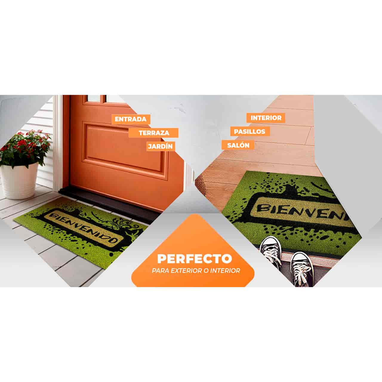 - Evita resbalones con su base antideslizante de PVC. Límpiate los pies de manera segura en este felpudo con base antideslizante de PVC. Evita cualquier tipo de desavenencia ocasionada por suelos húmedos o con polvo.