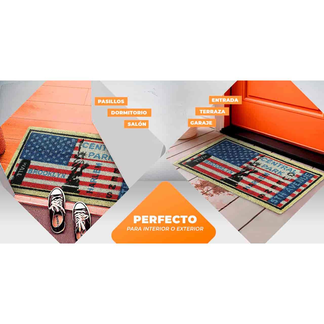 - Evita resbalones con su base antideslizante de PVC. Límpiate los pies de manera segura en este felpudo con base antideslizante de PVC. Evita cualquier tipo de desavenencia ocasionada por suelos húmedos o con polvo.