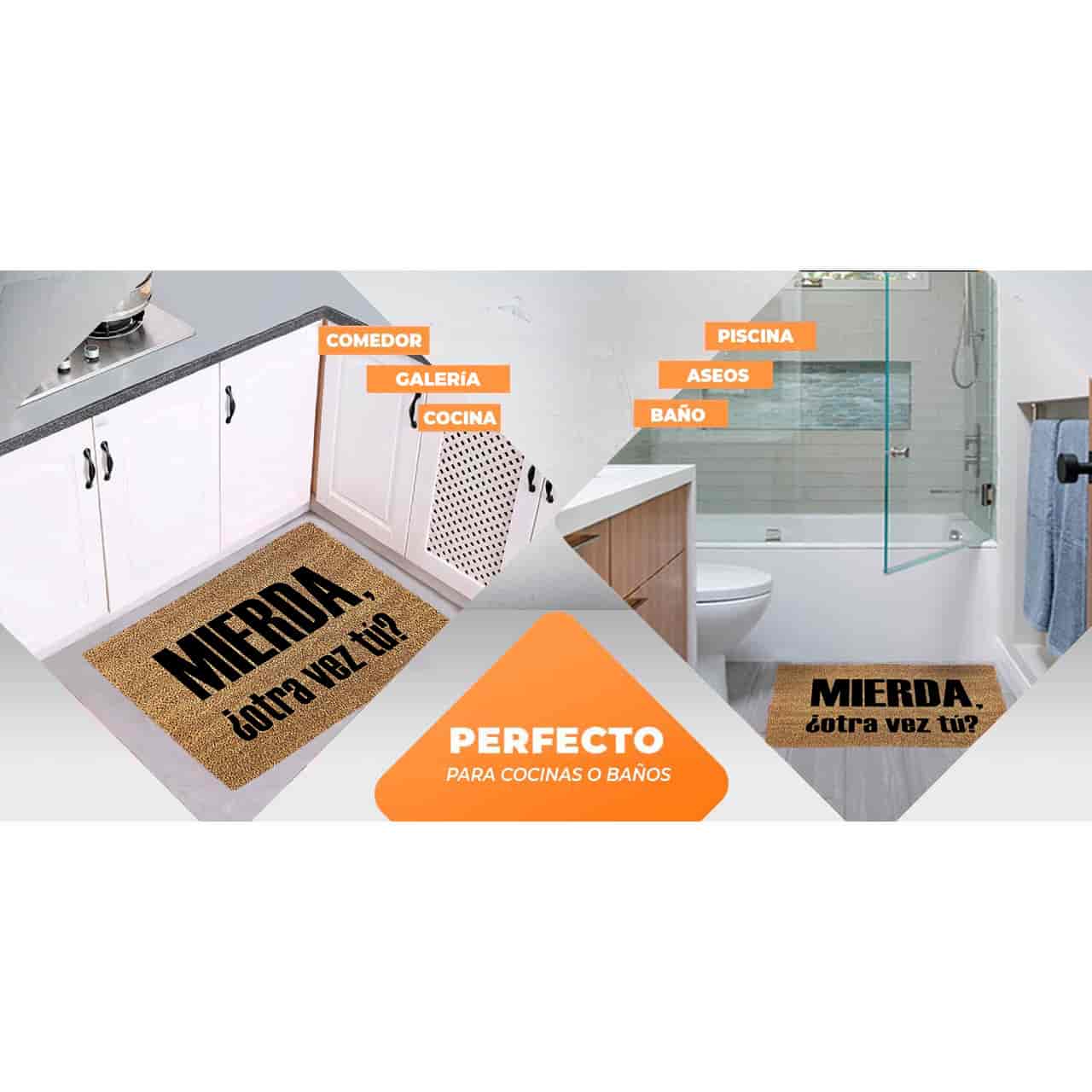 - Evita resbalones con su base antideslizante de PVC. Límpiate los pies de manera segura en este felpudo con base antideslizante de PVC. Evita cualquier tipo de desavenencia ocasionada por suelos húmedos o con polvo.