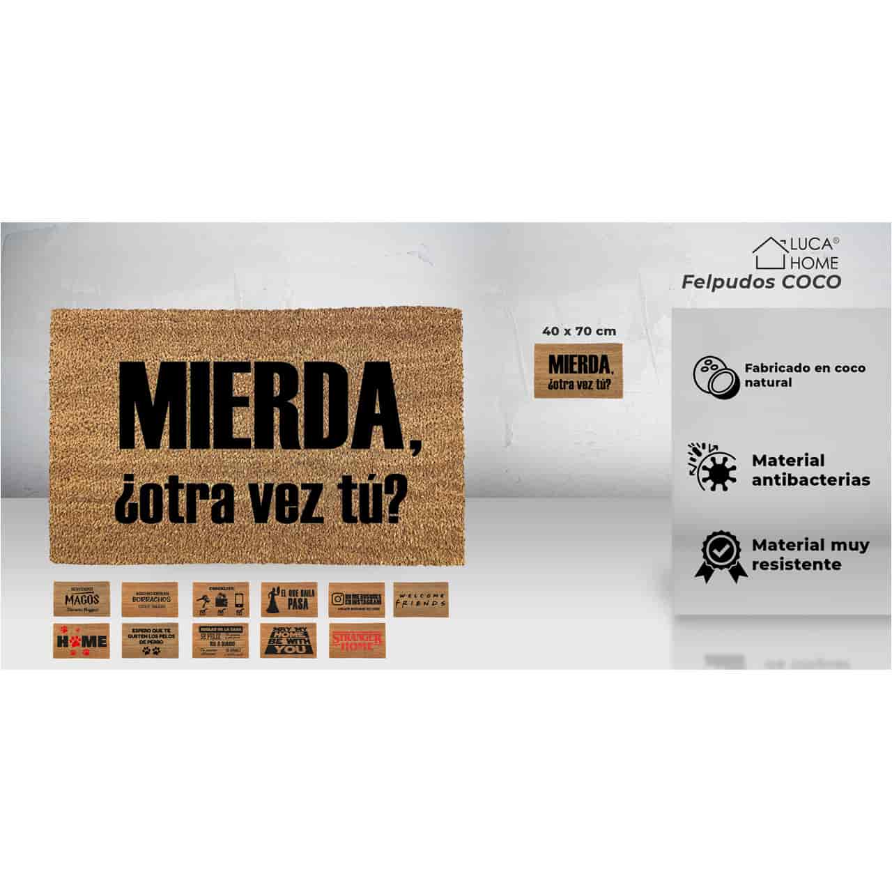 - Muchas opciones diferentes de diseño. Elige el diseño del felpudo de coco que más se adapte a la superficie o zona donde quieras colocarlo. Desde LucaHome te proporcionamos opciones diferentes de diseño con muchas frases y dibujos diferentes. El tamaño del felpudo es de 40×70 cm.