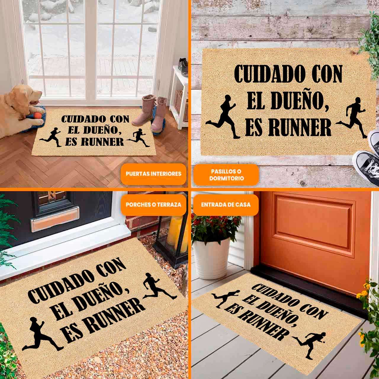 Felpudo de Coco «Cuidado con el dueño, es runner» – El Felpudo Ideal para Apasionados del Running
