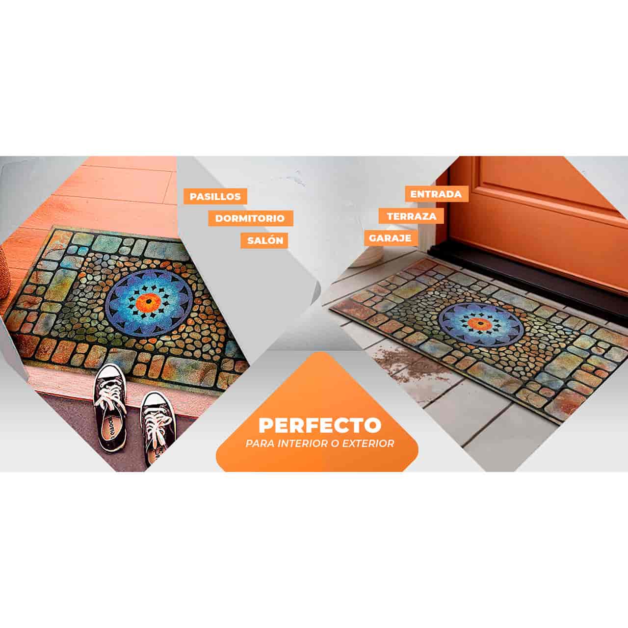 Podrás utilizarlo en cualquier estancia o habitación e incluso en zonas húmedas como la cocina o el baño. Asimismo, este felpudo también es apto para zonas como la entrada, la terraza, la piscina o el garaje.